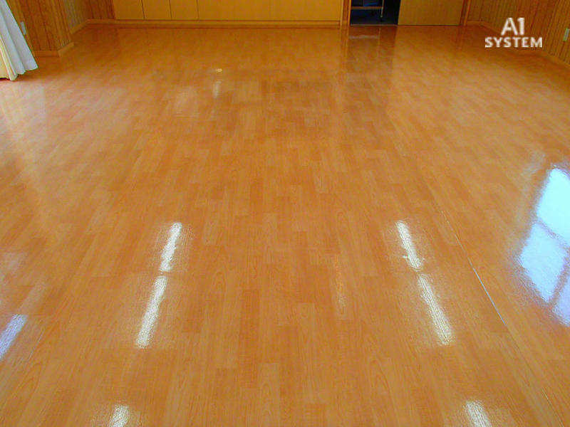 床の汚れやワックスをしっかり除去してから、化学床に適した塗料を使い施工します。
